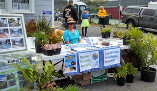 Comprised of a soil scientist, a native plant nursery/landscape designer, a County planner, and a couple community members, the Humboldt OFG Committee volunteered their Sunday to a day of garden discourse. In addition to displaying educational materials that included posters, pamphlets, and books, the OFG booth was host to a lush and colorful bounty of potted native plants that might be highlighted and found in an OFG on the North Coast and inland areas. From herbaceous wetland plants, to evergreen trees, these plants can be used for beautiful residential and commercial gardens and landscapes, stormwater and low impact developments, urban and wildlands, and agricultural shelterbelts. The team was also able to direct folks to the recently installed City of Trinidad streetscape and Gateway project, that highlights many of these native plants grown from local plant stock and seed sources.