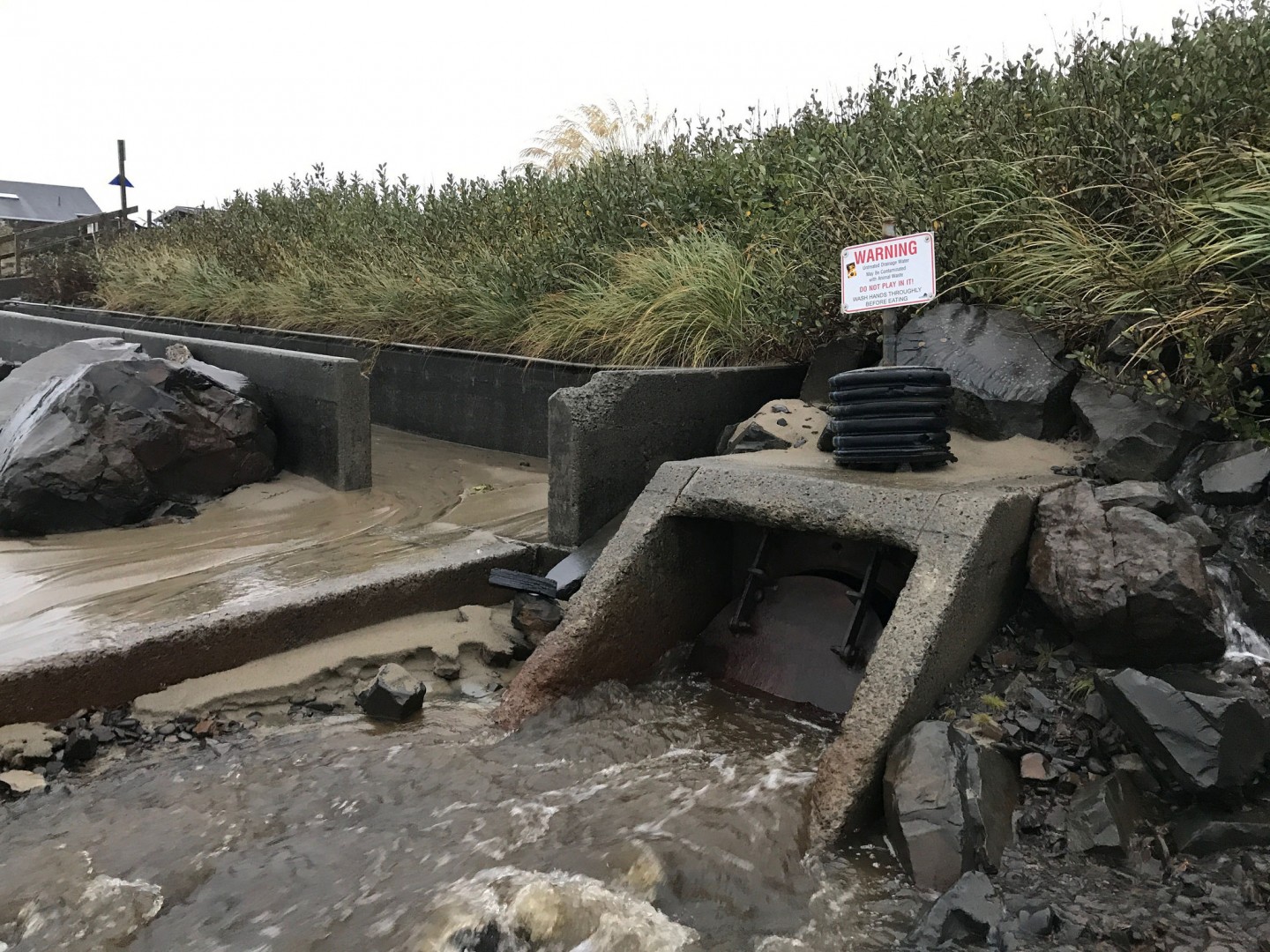 Both the State’s Beach Monitoring Program and Surfrider’s BWTF data have identified one of the North Coast’s sampling sites, Ecola Court at Cannon Beach, as one of the most polluted stormwater outfalls on Oregon beaches. Bacteria levels exceed the health advisory limits 50% of the time this site is tested. The public health risk is high too as Ecola Court is the primary beach access to Cannon Beach for locals and tourists alike, and children like to splash and play in the shallow stream of stormwater that discharges onto the beach. On a busy day in the summer, the health of tens of thousands of beachgoers could be at risk from the polluted water flowing from this stormwater outfall pipe.