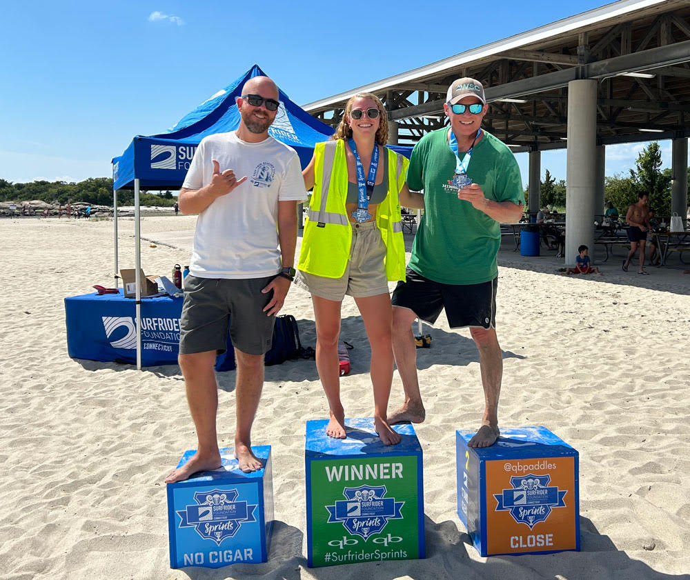 We also co-host, with Tina Pritchard of Scoot & Paddle, one of the largest paddle board races on the East Coast, the Charles Island SUP cup and Sprint Series races. This event brings hundreds of racers and spectators to our beaches every summer; participants get a chance to compete and also learn more about Surfrider. It really is a great community event.