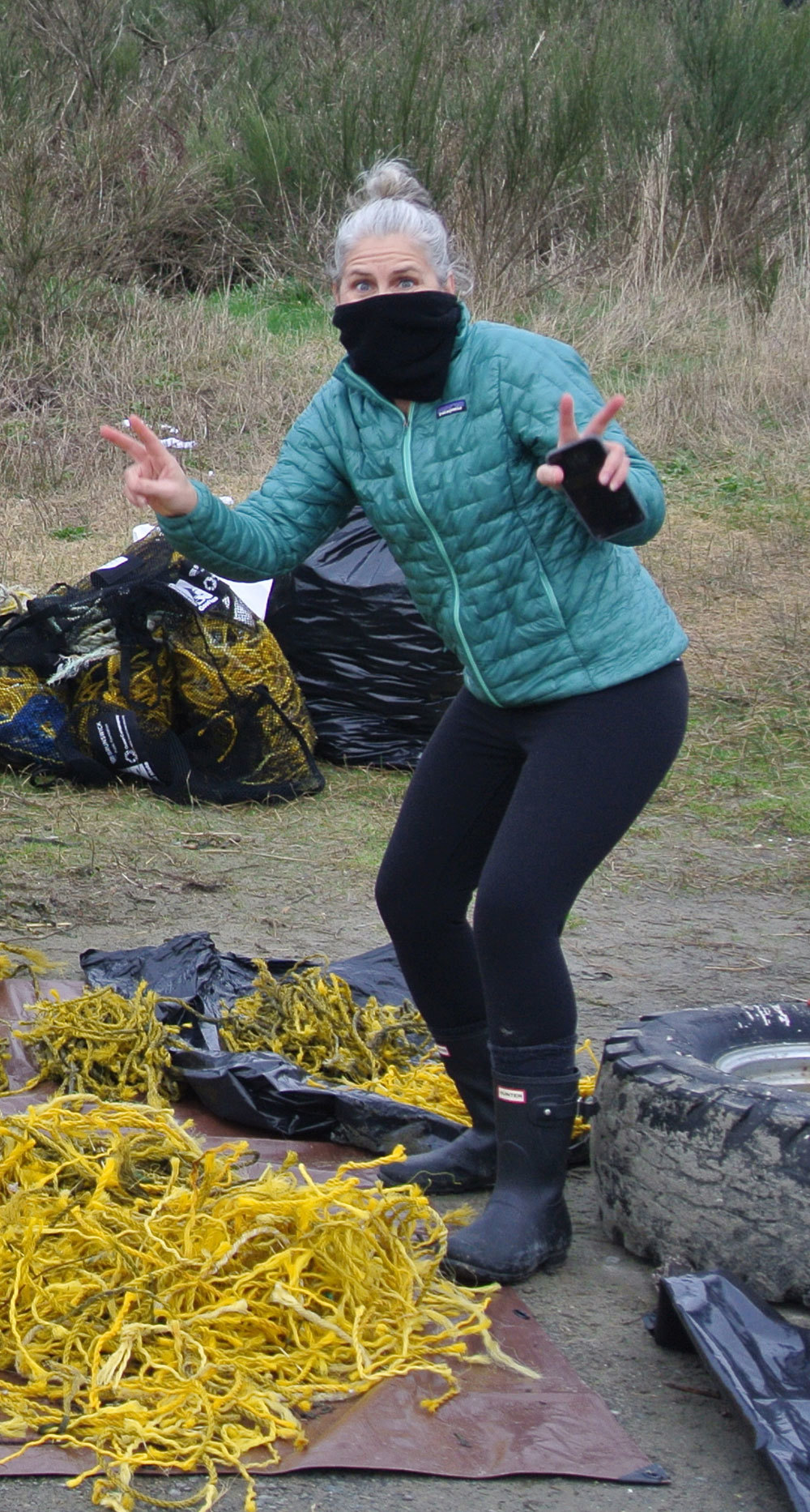 My passion project has been the Yellow Rope Cleanup efforts in Grays Harbor. The yellow ropes are remnants of the “longline” method of growing oysters, which is used by many of the Pacific Coast farmers in Washington. The rope is made of a non-biodegradable plastic - so it lasts forever. On any given day, hundreds of small 4”-5” ropes can be found washed up on the beaches and caught in seaweed, rocks, driftwood and the rocky shorelines. We see a major influx after the King Tides in late fall. So far, we have cleaned up over 36,000 ropes, just in the past year.