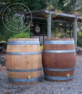 While an online search for rain barrels usually comes up with an array of industrial plastic barrels (usually blue), there are many materials that can be bought and/or customized to collect and save the water for future use. Recycled oak whiskey and wine barrels,