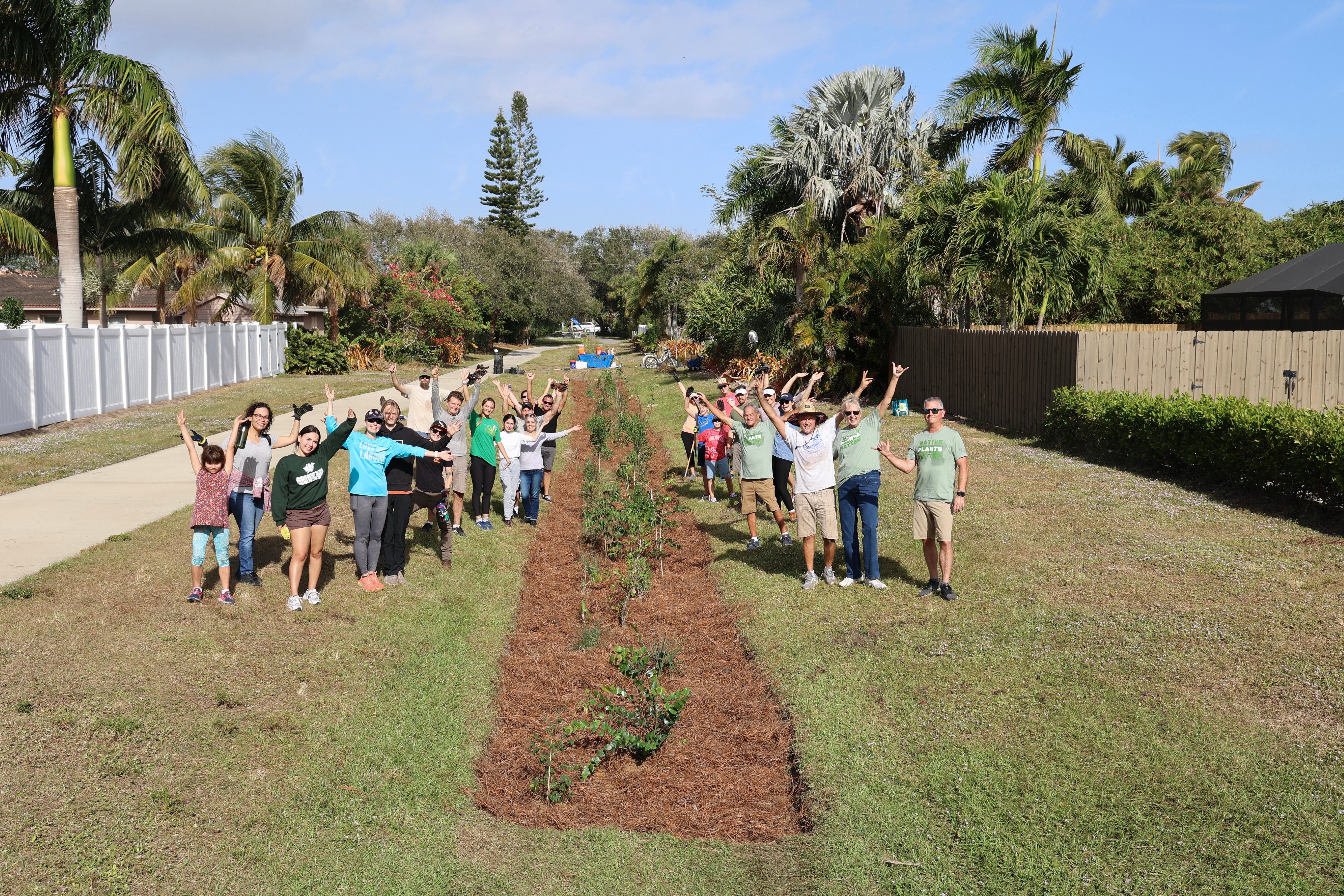 Why bioswales? These Ocean Friendly Gardens restore natural watershed functions, prevent stormwater pollution, and protect local water supplies. By replacing sod with native vegetation, we increase the uptake of nutrients and pollutants, making the bioswales more efficient in protecting the nearby Indian River Lagoon.