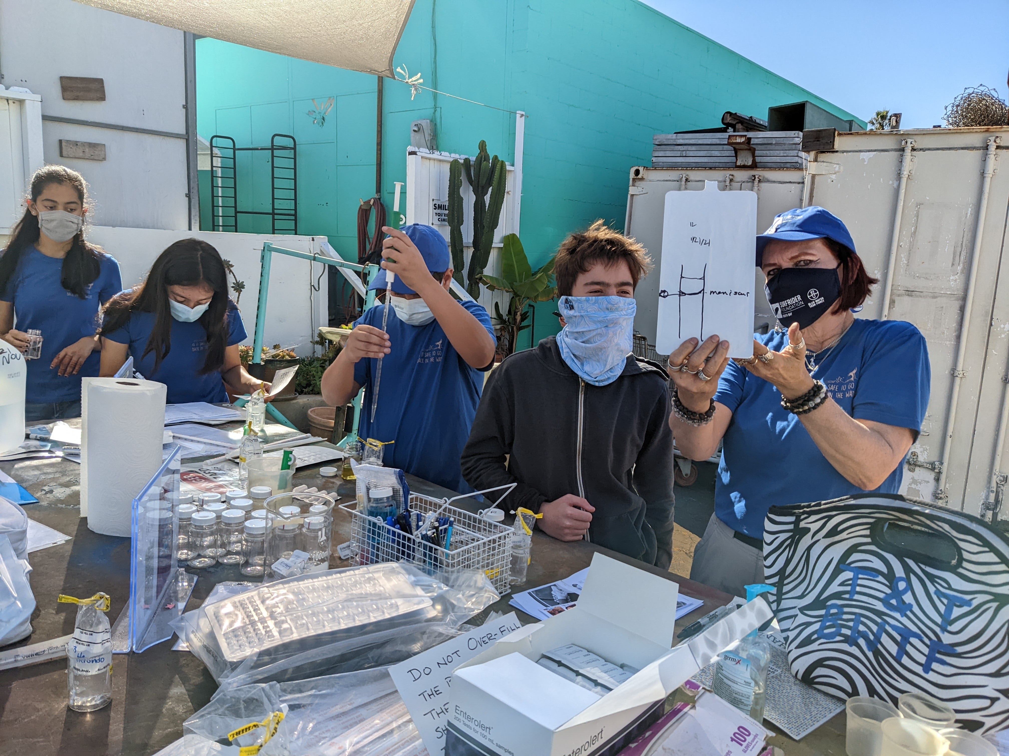 Above: Students process samples at Dive n’ Surf lab with the South Bay BWTF Coordinator overlooking.