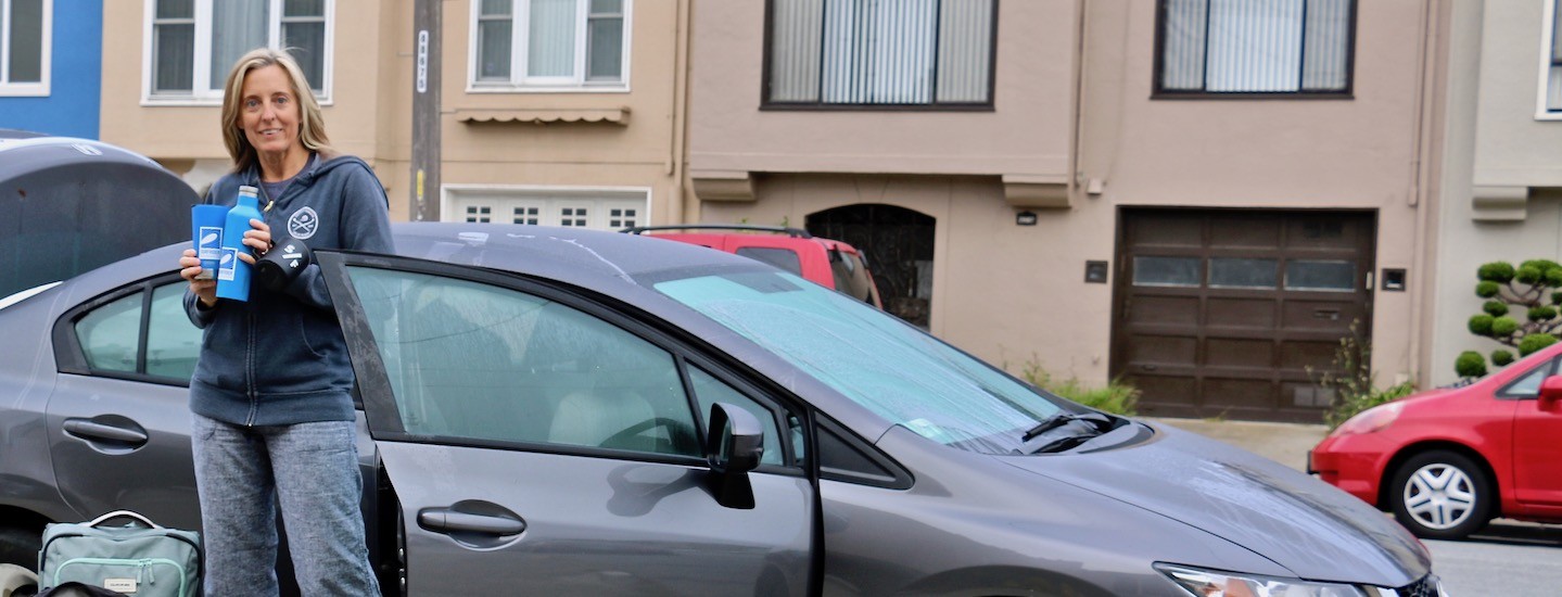 Given all the info and encouragement out there – and the fact that I work for an organization dedicated to fighting plastic and in a state in which we are winning that fight; I decided to try to up my game on my most recent trip. This one took me from Humboldt (where I live) to San Francisco (where I live) to Sacramento (to testify on a bill designed to improve leadership on climate change adaptation) to Salinas (where the California Coastal Commission met) to Santa Cruz (to hang out with the Santa Cruz chapter and look for whales) to Monterey (just hanging out) back to San Francisco, etc., etc.