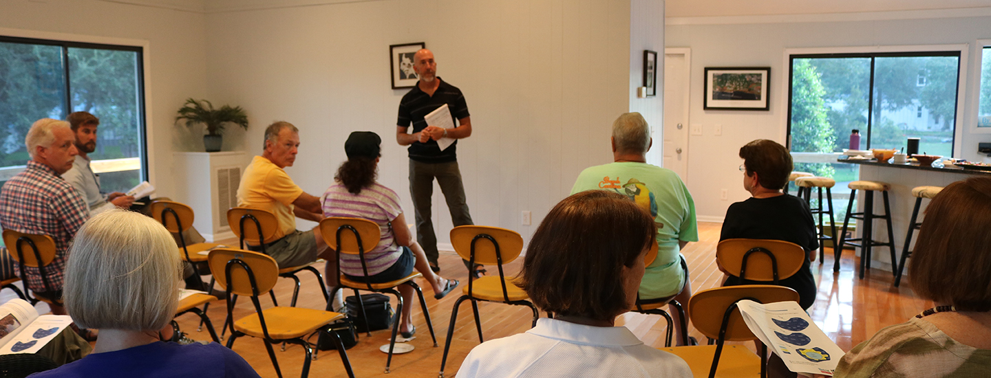 Anyway, back to the presentations. Cape Fear Surfrider Chapter Chair, Ethan Crouch, and I presented an OFG seminar at Dolphin Bay community clubhouse to approximately 15-20 homeowners. Most were from Dolphin Bay, which has pretty persistent flooding issues, and a few were from the local area (see map, below). The presentation consisted of basic facts regarding storm water runoff, and presented OFGs and rain barrels as ways to help clean our water and save money on watering.