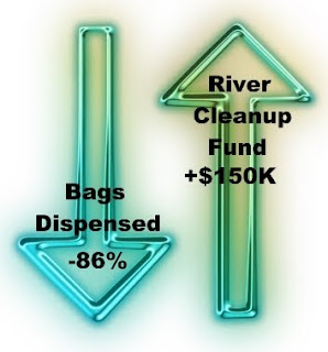 > -86%: Plastic and paper bag dispensing DOWN (22M bags/month prior to fee, 3M after fee). 86%!!!