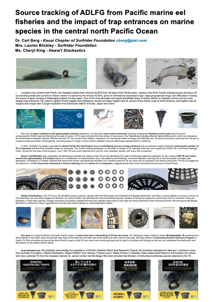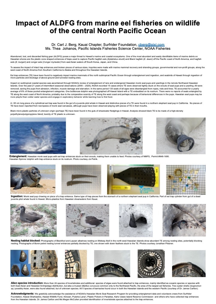 Impact of ALDFG from marine eel fisheries on wildlife of the central North Pacific Ocean – poster session