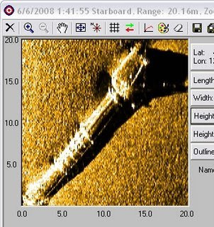 The EPA vessel OSV Bold was performing sidescan transects offshore Newport, OR last night. They obtained the last known position of the Finavera wave energy buoy, just north of our planned survey, and added a short transect to try to locate it. They were successful. The attached sonar target record contains the buoy’s sidescan image. The exact location and dimensions were also collected.