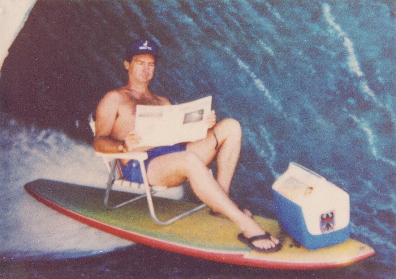 The creation of an organization designed to support him and his work may have been the highlight of Tom’s Surfrider experience. There were any number of unique moments, including SF’s first victory protecting the shape of the wave at Malibu, followed by stopping a breakwater project in Imperial Beach, and culminating in receiving the Coastal and Ocean Management Award (a very prestigious award given to Tom for “organizing the surfing community as an effective public interest group"). Of special note might also be Tom’s visit to the Army Corps of Engineers' wave modeling facility in Vicksburg, Mississippi, where he showed them that their plans for a project in San Diego simply would not work!