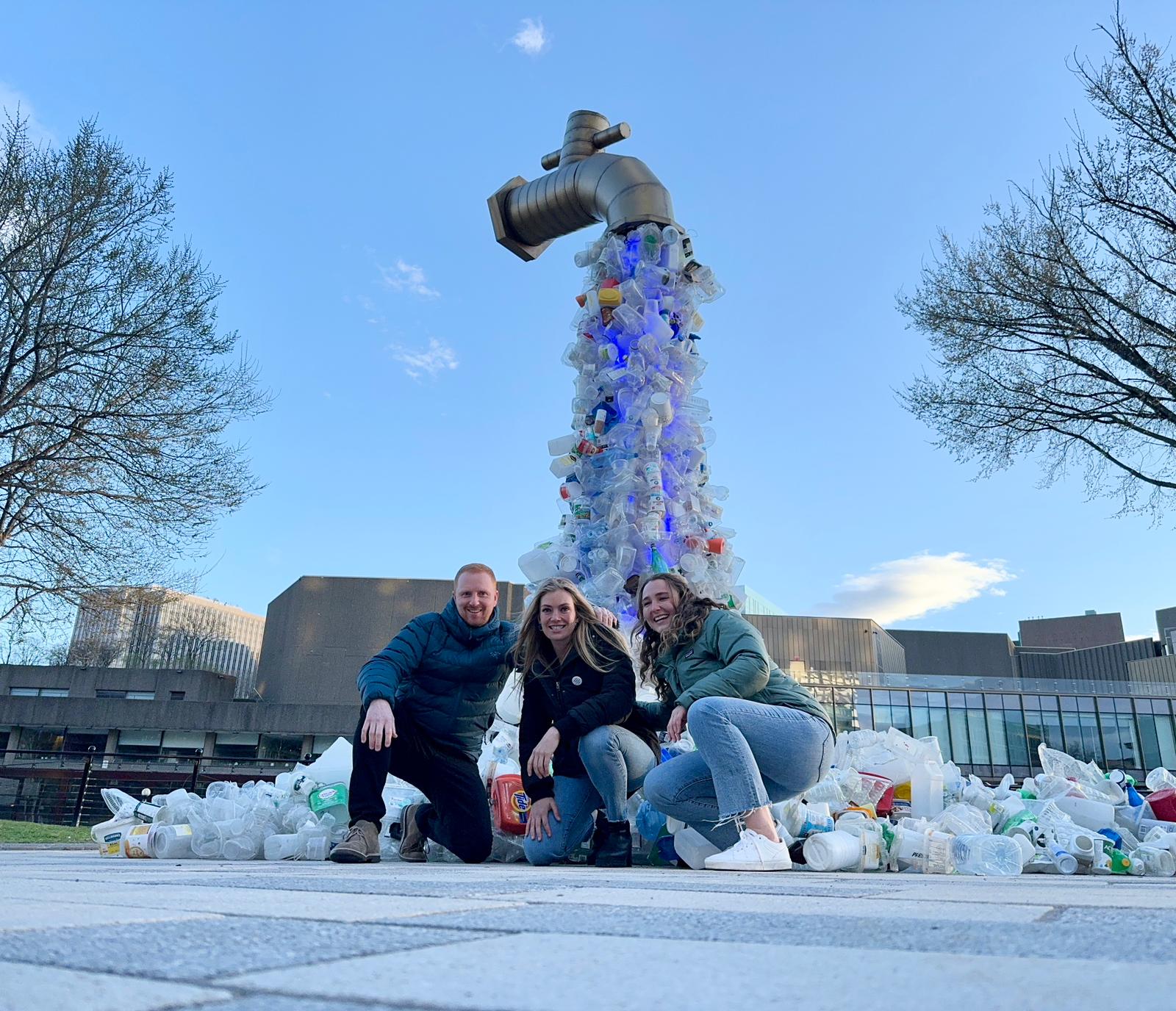 Surfrider Foundation Canada's Chapter Manager Lilly Woodbury and Executive Director Lucas Harris unveil the 'Smoked Tuna' at the Plastic Action Zone