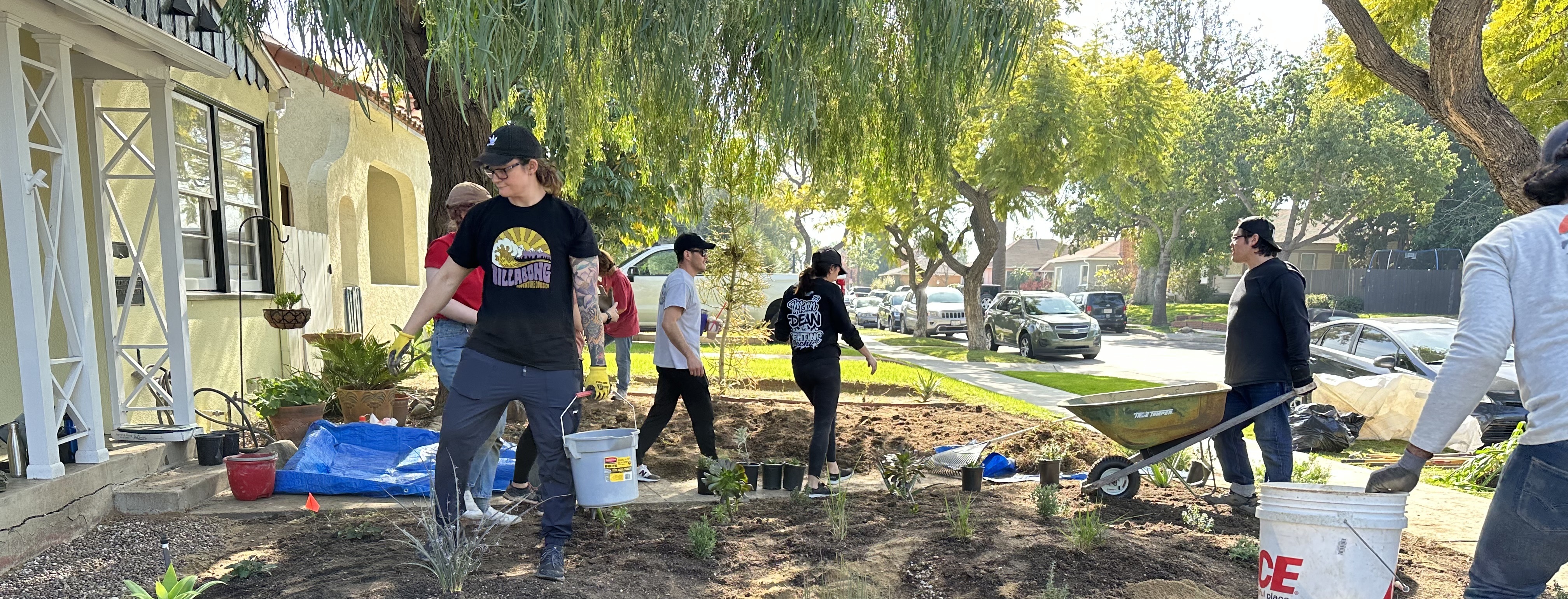 The Surfrider Foundation’s Long Beach chapter hosted three hands-on garden workshops and a walking tour around Long Beach to teach volunteers about Ocean Friendly Gardens. These workshops were part of a grant project implemented in collaboration with Dashboard.Earth, aimed at engaging Long Beach residents in tangible and personalized actions that anyone can easily take at home and in their neighborhood to conserve water, reduce pollution and build climate resiliency. The gardens we installed will have a lasting impact in reducing stormwater runoff, providing habitat for pollinators, and creating a climate resilient community.