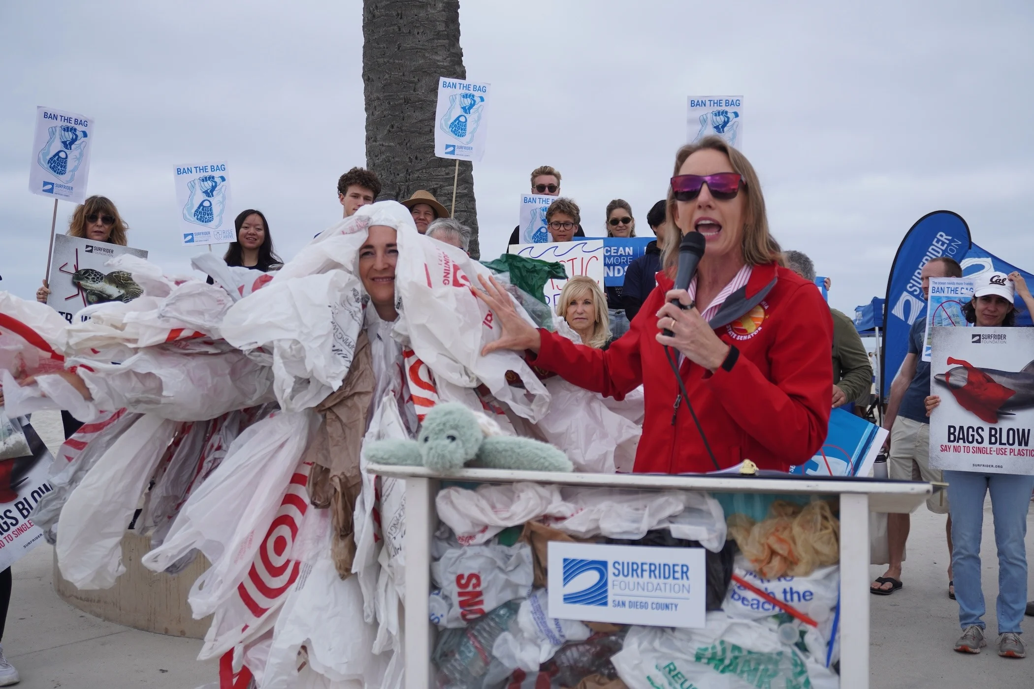 CA Senator Blakespear at a press conference to strengthen the statewide bag ban (San Diego Surfrider Chapter)
