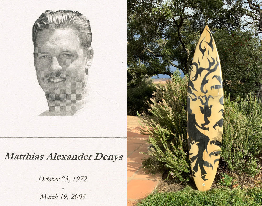 As the years passed and while in high school, he would sneak out of the house in the very early morning hours and together with a good friend drive to Santa Cruz, 45 miles away, to go surfing before being back in school at 8:00 o’clock. A story we only found out later. At the beginning of one high school summer, Matthias applied for a job listing at a financial institution only open to Stanford University students. Despite his young age, he was accepted, but only after he had negotiated the option to leave his job early when ‘the surf was up’. He also volunteered and traveled several summers with Amigos de Las Americas to South America and commented that he met happy people despite having few material goods. After college he entered the tech industry during the dot-com heyday. Because of his creative talents, he became a successful web designer of a startup, despite his lack of formal training. His artistic talents were also reflected in his passion for photography. He would even go on to design his own surfboard graphics. Matthias was truly an inspiration to many of his friends and others in need. One friend commented on his charisma: “When Matthias walks in, the lights go on”. Yet, in March 2003, Matthias passed away leaving us with so many wonderful memories of a bright, witty surfer and friend to so many people.