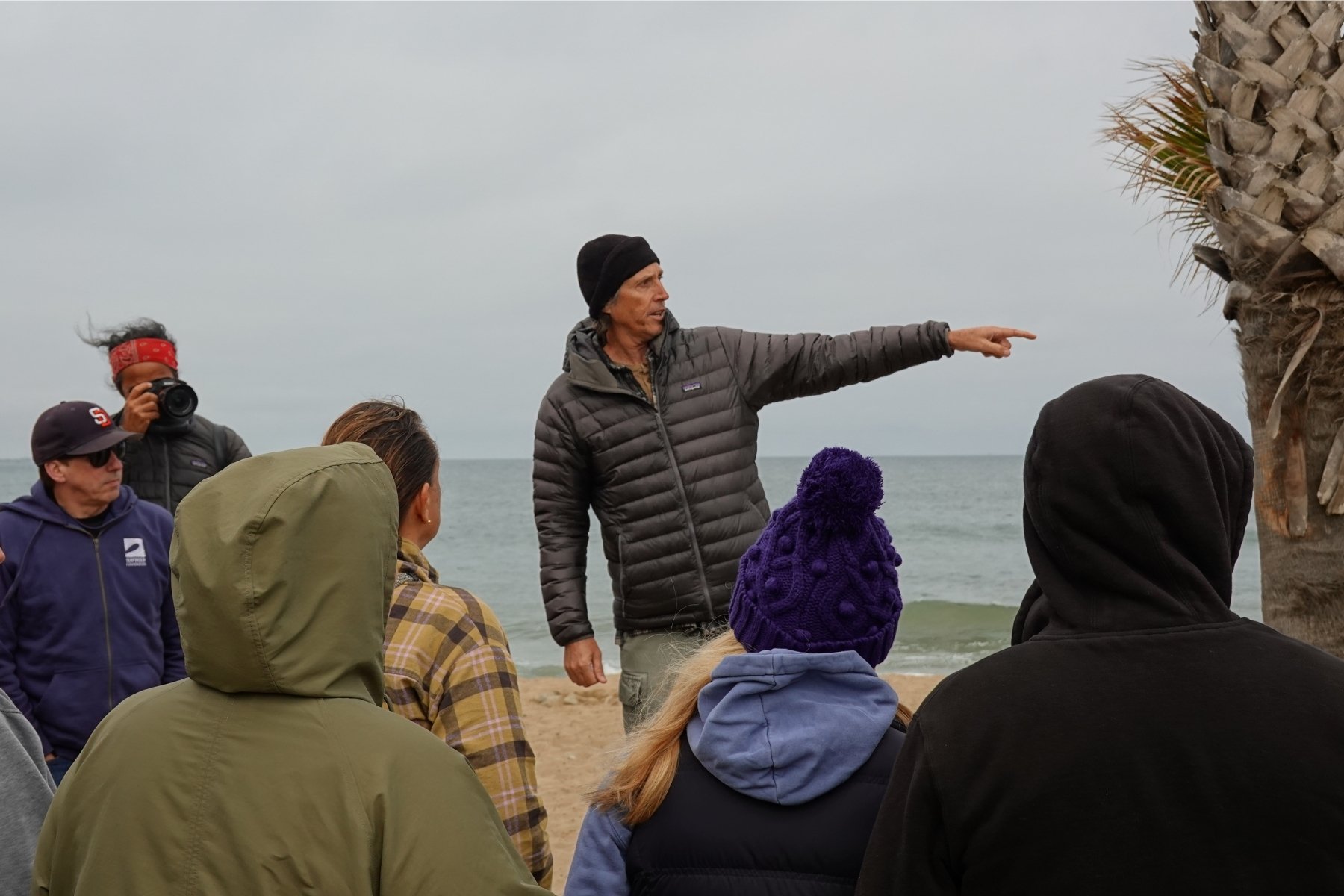 From L.A., we wound our way up Pacific Coast Highway to Ventura, where we met up with Surfrider’s Ventura County Campaign Coordinator Paul Jenkin for a walking tour of Surfers’ Point, an incredible example of what coastal restoration can look like. Despite the gray sky and stiff breeze, nearly 40 people turned out for the tour and to sign postcards at our tabling station. Afterwards, we set up at Topa Topa, a nearby brewery and longtime Surfrider supporter, where members of the crowd took a break from line dancing to speak up in support of coastal access!