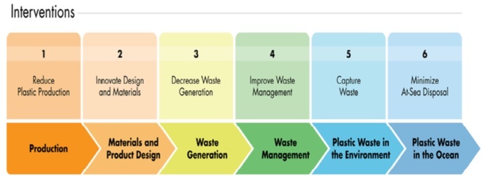 Actions and interventions are critical to stopping the input of plastic waste into our environment, and a suite of interventions identified align with the Surfrider Foundation's Plastic Pollution Initiative. The first intervention identified is to reduce plastic production or manufacturing through national goals and strategies. Source reduction has long been a Surfrider priority for our plastic pollution initiative as it reduces the amount of plastic from the beginning, so plastic waste does not enter the environment in the first place. There is no single solution for tackling the plastic pollution crisis, but the most effective intervention is less plastic production.