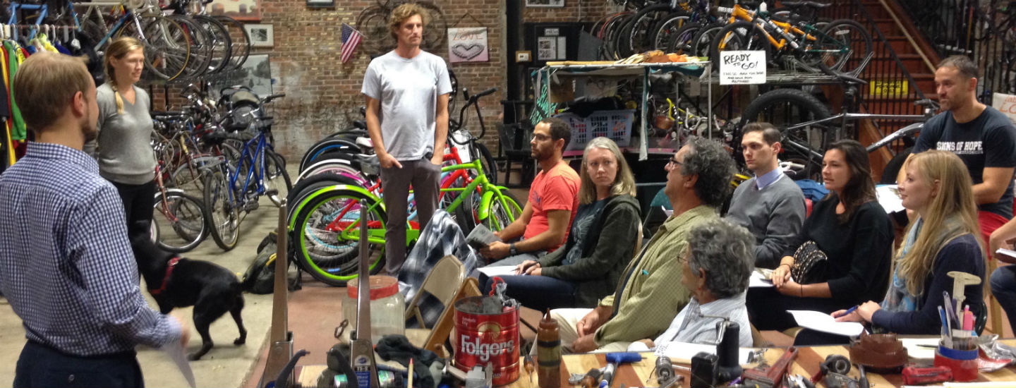 My next stop was the Jersey Shore, speaking at the monthly meeting of the Jersey Shore Chapter, which attracted OFG volunteers from the South Jersey Chapter. Prior to the meeting, I got a tour of the City of Asbury Park's downtown, seeing a rain garden at the bus depot that the chapter helped contribute to (at left). After the meeting, a few attendees expressed interest in volunteering their homes for an OFG workday, and they got connected with the Jersey Shore OFG leaders. The OFG program has created an OFG as a residence and led several rain barrel-building workshops with Rutgers University Extension Program.