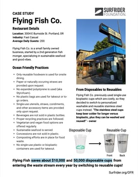 Flying Fish Company LLC is a sustainable fish market and Ocean Friendly Restaurant located in Portland, Oregon. In addition to offering delicious, sustainable seafood, Flying Fish Co. sources local ingredients whenever possible, keeps a hive of pollinating honey bees atop the building to pollinate their garden, and uses reusable cups for all drinks onsite. They made the switch from disposable bioplastic cups to reusable stainless steel cups a few years ago and have seen about $10,000 worth of savings per year! The Surfrider Portland Chapter sat down with owner Lyf Gildersleeve to hear more about their ocean-friendly practices. It was so good that we had to create an official case study.