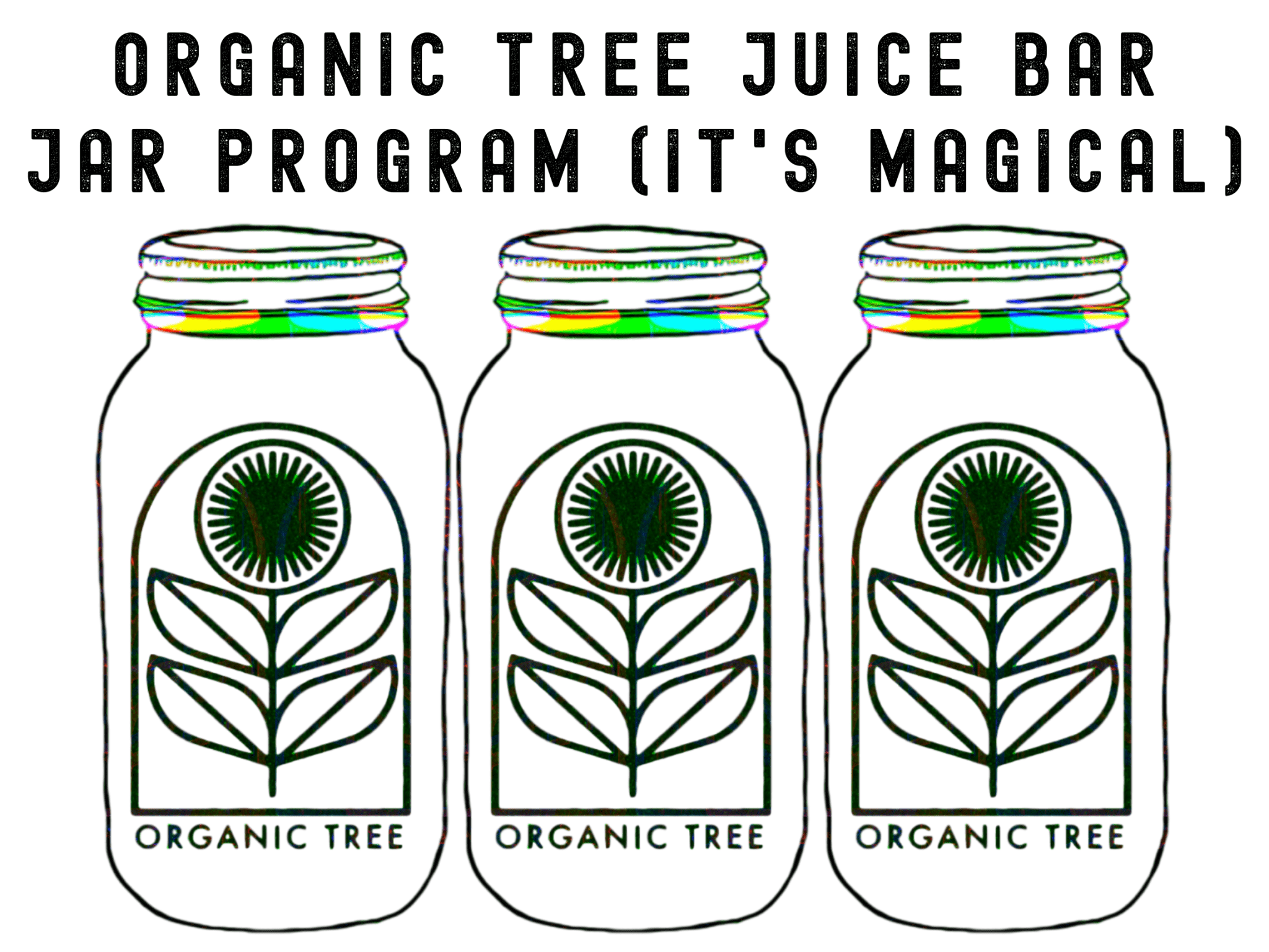Organic Tree's business values and intentions support the very best business practices for the community and environment. They serve all of their juices and smoothies in glass jars, with no plastic footprint while also featuring an incentive program where customers return jars for refill at customer discount.