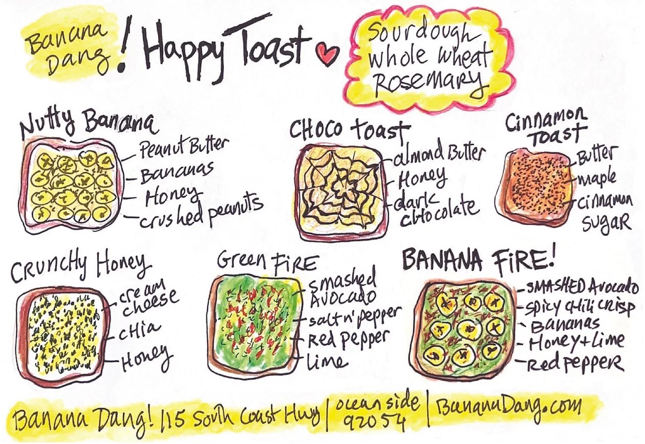 Banana Dang's coffee and toast menu from their website.