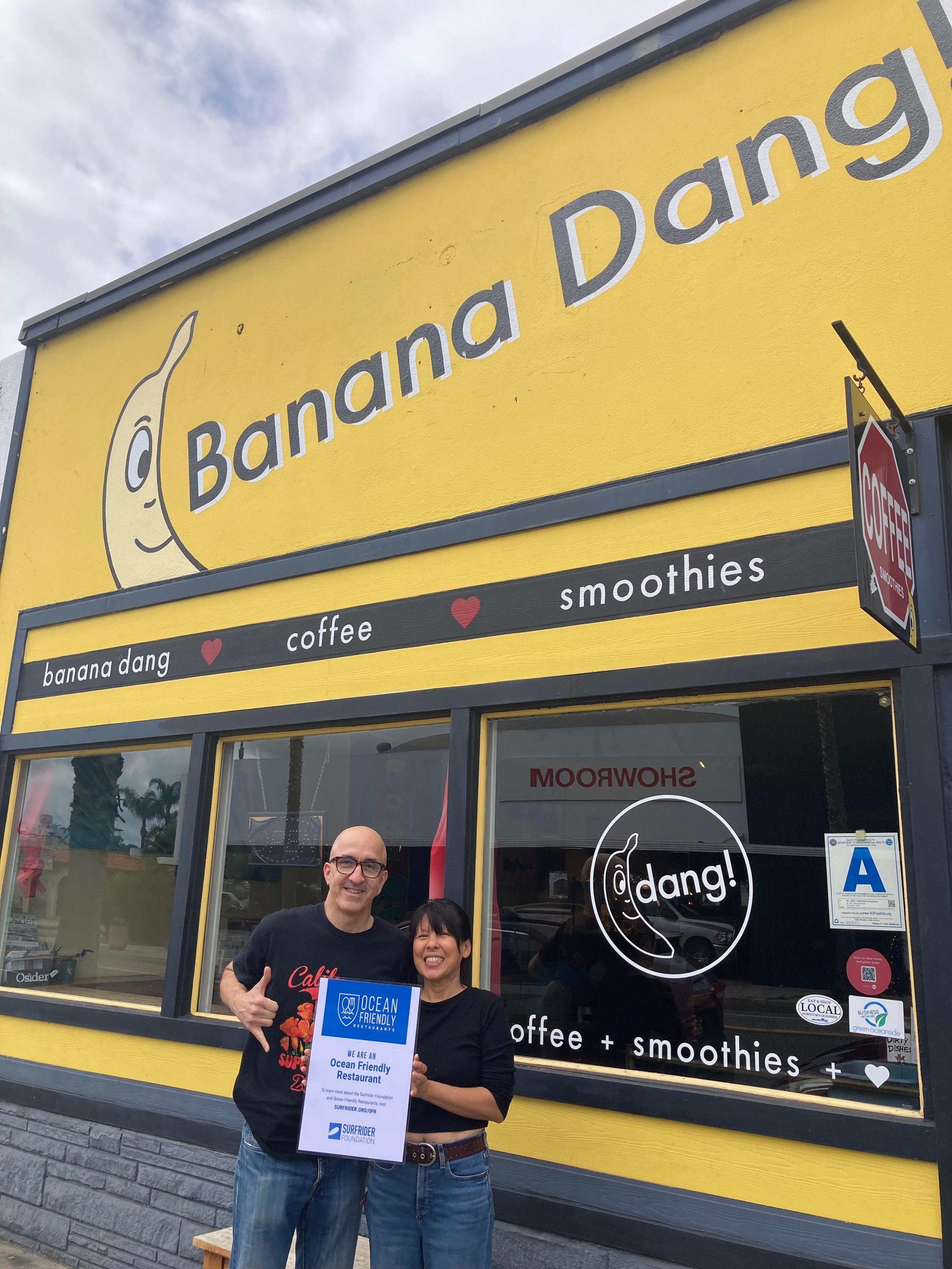 The Surfrider Foundation's San Diego Chapter is proud to introduce T2 and Mario, owners of Banana Dang Coffee, located in Oceanside, California. You can’t miss them, just look for the yellow building with their banana logo on the front.