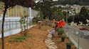 Workday 2 - Early this year came phase two of the project: installation of a bio-swale. A swale is a low point to which water flows and can be thought of as a dry creekbed; add plants for the “bio” part. Again, a dedicated group of over 30 students, parents, and volunteers came out to install the bio-swale. The bios-wale now extends the entire 100 ft length of the project site, and is able to catch and retain surface water runoff coming from the west side of campus (containing impermeable playground and lunch areas).