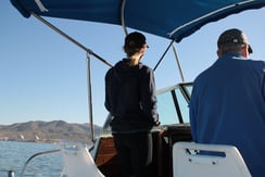 Top: Surf zone sample collection. Bottom: Offshore outfall sample collection, made possible thanks to the generous volunteer time and boat trips provided by Dan Stetson. Images by Colleen Henn.