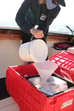 At ORO, Dr. Buesseler established a volunteer monitoring program where coastal community members can order sample kits and follow very clear and simple sampling methods to collect a sample of their local beach water to ship back to ORO’s lab. Researchers at ORO then process and test the samples for the presence and concentration of Cesium-137 and Cesium-134, radioactive byproducts of nuclear fission (a process used by nuclear generation facilities). These radioactive forms of cesium are not naturally occurring, but occur at low levels everywhere due to human sources, including atmospheric testing of nuclear weapons in the 1950’s and 60’s, and the nuclear power industry. Learn more from The Agency for Toxic Substances and Disease Registry.