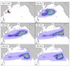 Northwestern Hawaiian islands might see a glancing blow of the debris field soon. Over time plastic debris from the Japan tsunami could also reach some of Hawaii’s southeatern island beaches after a spin in the North Pacific Gyre. Here’s a time-lapse animation of the possible debris field path and dispersion to give you a better idea: