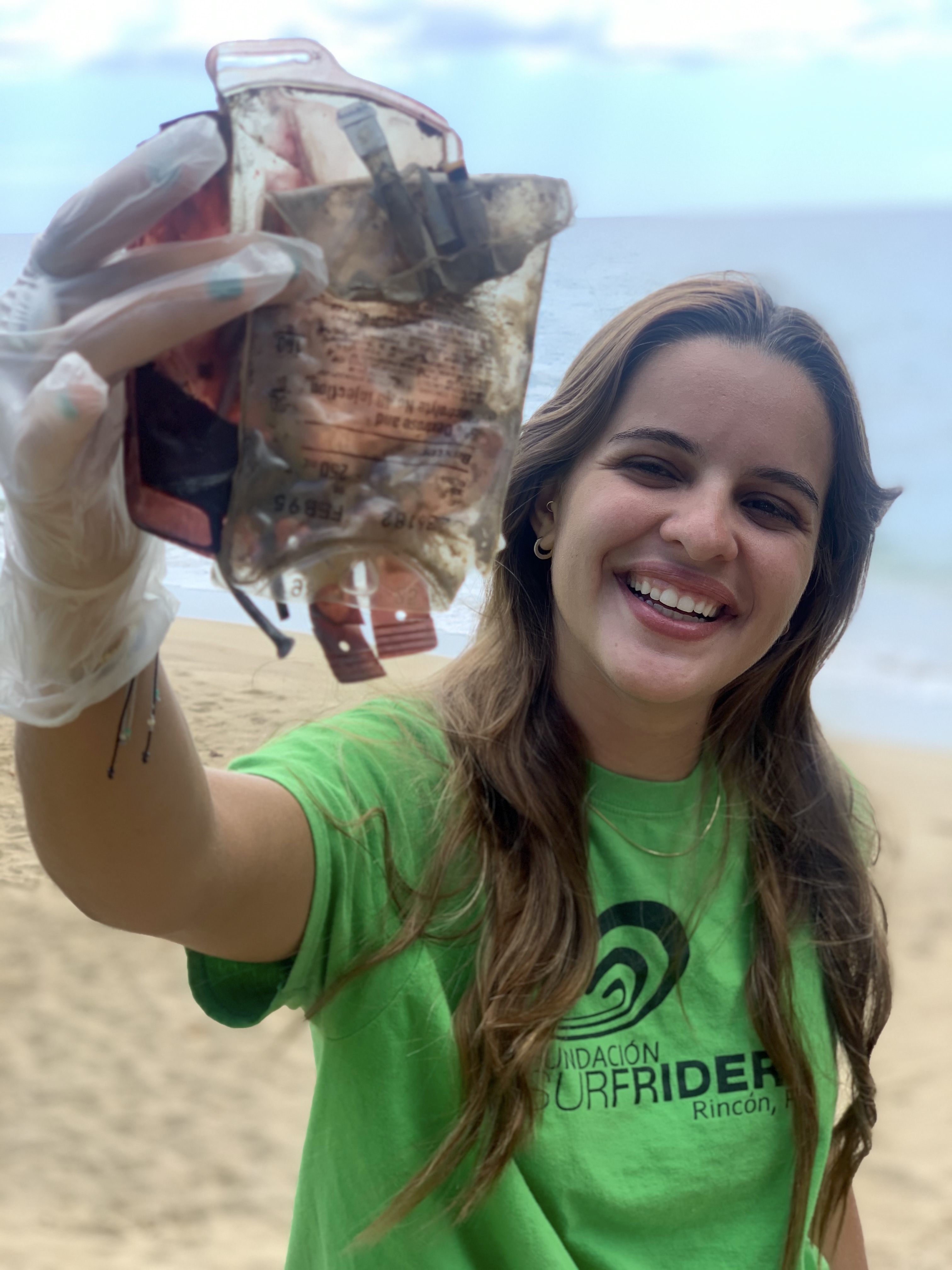English Translation: I became involved with the Surfrider Foundation in the summer of 2020 after attending a marine science summer field course in Rincón. I contacted the Rincón Surfrider Foundation Chapter to help the community and ocean environment in innovative ways. Since I'm an Animal Science/ Pre-Veterinary graduate, I got involved with the project documenting medical waste debris affecting the shores of Añasco. I advised on the laboratory items and the associated discarded lab supply containers that continue to be found there. After that, I got involved with the BWTF and developed an interest in water quality, starting that particular journey.
