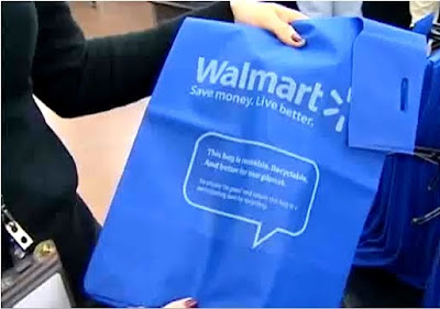 Well, well, well…hello to progressive retail, from…Walmart? YEP! Walmart, the largest grocery retailer in the United States, AND the largest private employer is starting to kick the single-use bag habit. Three Walmart stores in Norther California are conducting a pilot program in which they are operating as if the pending state bag ban had been passed. According to reports, things are going well, with the biggest “complaint” being the usual “I never remember to bring my reusable bags with me…” - but in this case, shoppers w/o bags find that their only option is to buy bags at checkout.