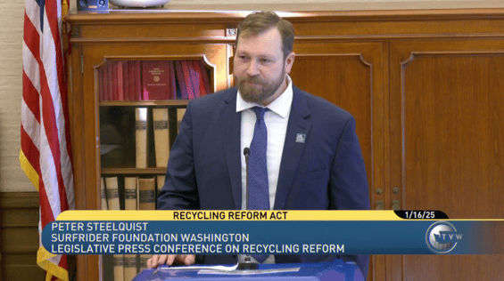 This bill was originally proposed in 2019, and interestingly enough, when I worked in my previous role as a legislative aide, it was my boss’s bill. So I have been working on this bill for the last six years. This bill has had many iterations, and it’s a complete overhaul to Washington’s recycling system. It’s an incredibly complex, systems-changing bill, and there are hundreds of stakeholders involved in this process. Surfrider has been one of the chief proponents of this bill, and a big reason for that is our Plastic Pollution Initiative. We were founding members of the Plastic-Free Washington Coalition, and we are active members of the Washington Environmental Priorities Coalition. The passing of this bill is a testament to the power of partnerships, and we would not be celebrating this victory without the multiyear, collaborative effort of so many individuals, groups, and coalitions.