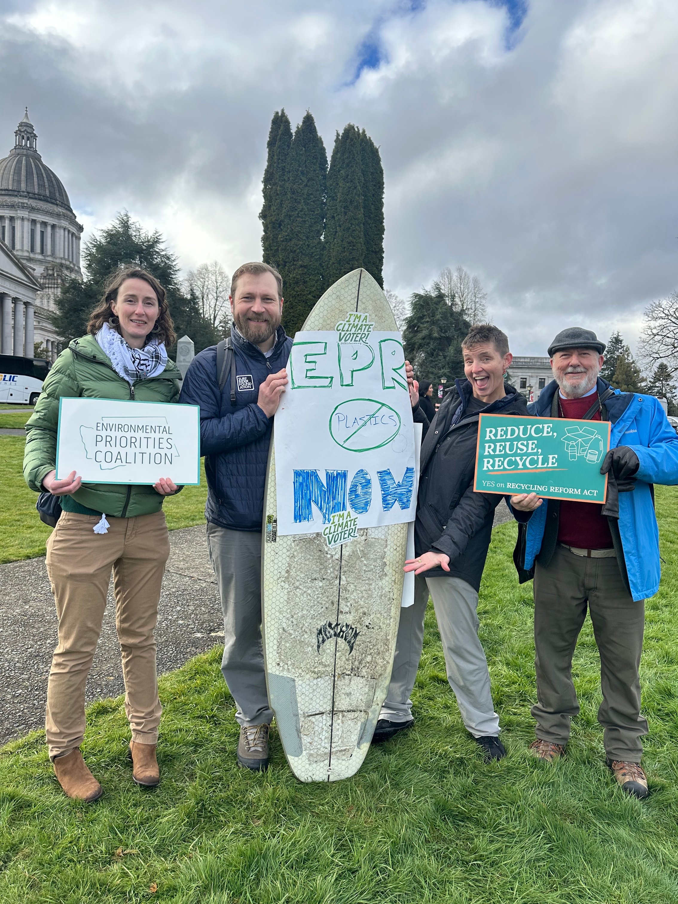 We met regularly throughout the years, we worked on the plastic bag ban and multiple smaller plastics bills, like the styrofoam ban, hotel toiletries, and things like that, but the EPR bill has always been the largest, most impactful goal. Surfrider has a huge grassroots network so we bring in a lot of voices from places that are most impacted by plastic pollution – our coastal communities and Puget Sound area. We’ve engaged our grassroots networks to leverage hundreds, if not thousands, of committee sign-ins, messages to legislators, and lobby day attendees with the help of our larger coalition.